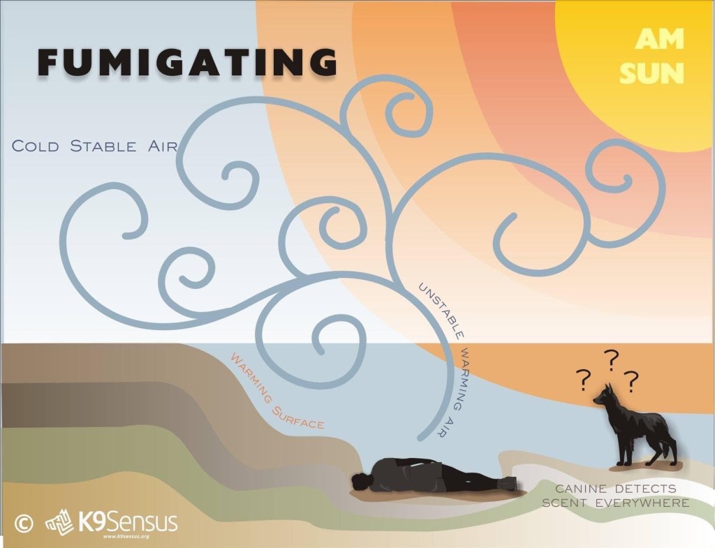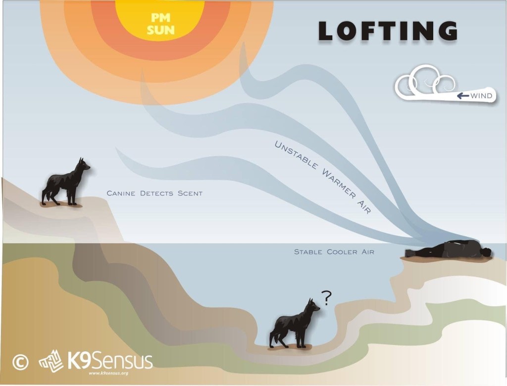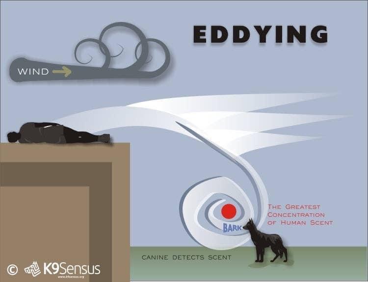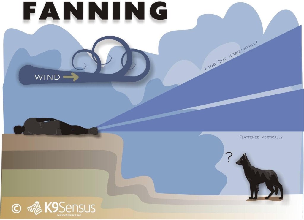 K9 – On a search mission keep in mind wind direction and unique conditions affecting airflow.