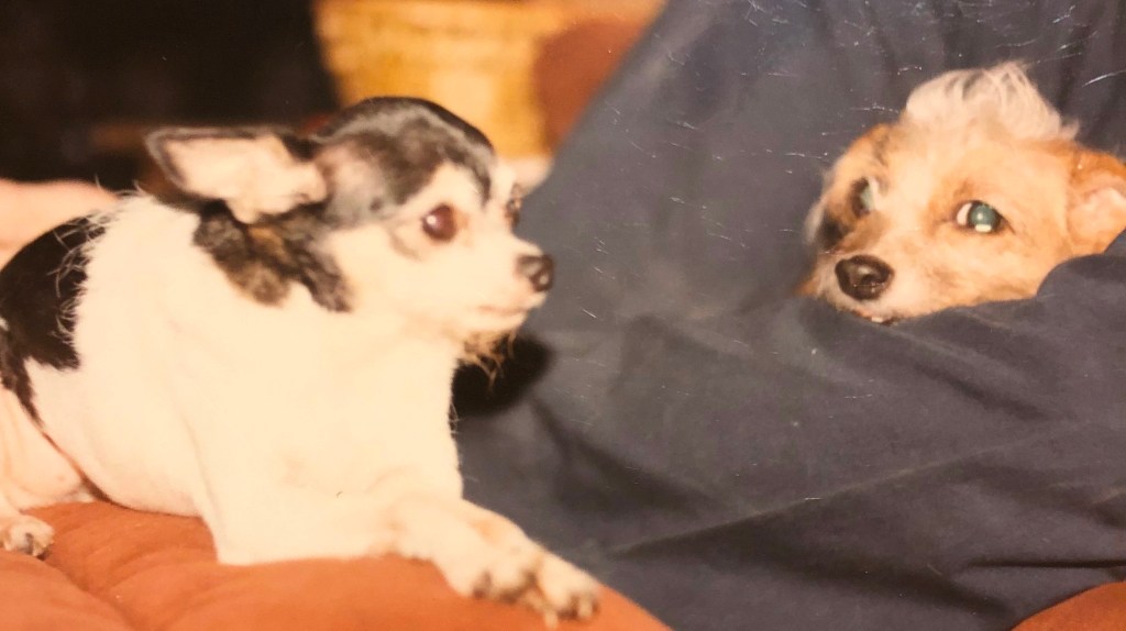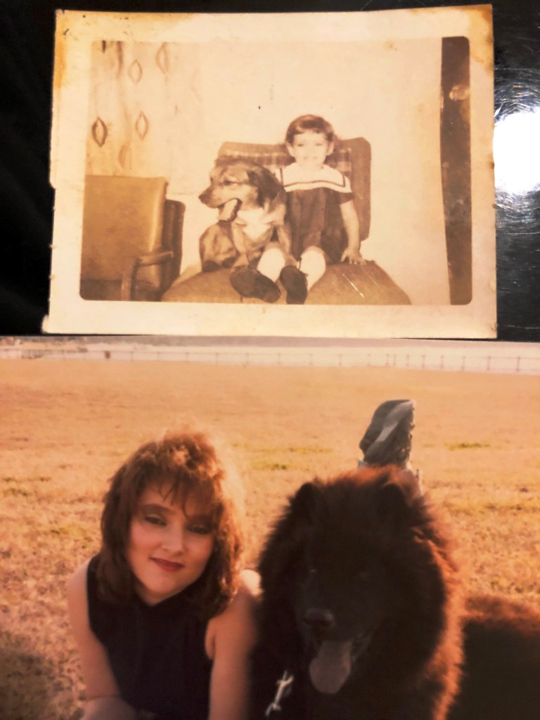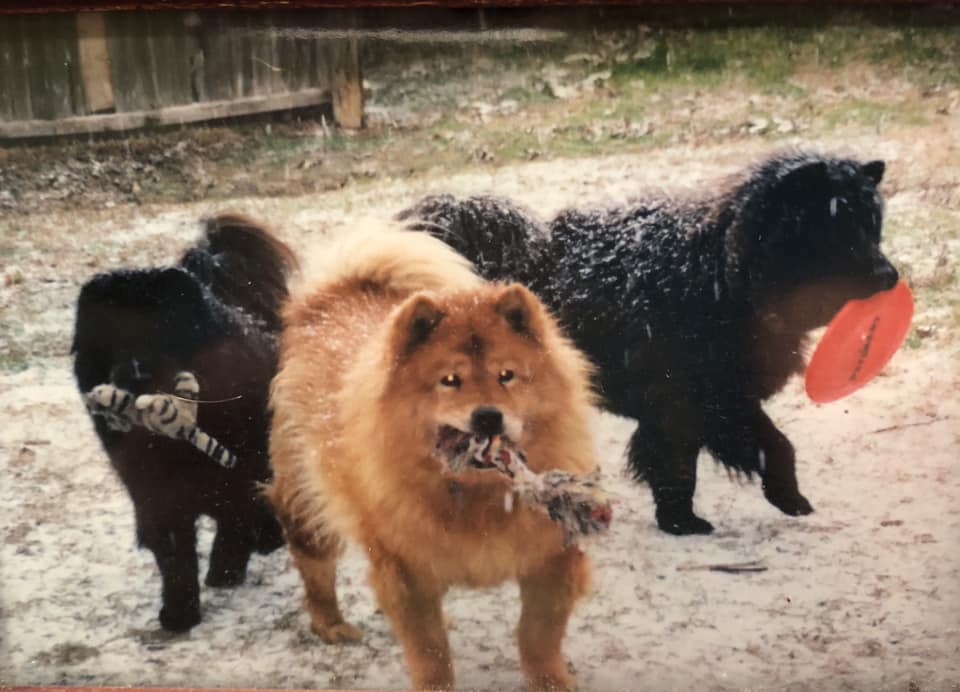 Peanut and T-Chienne (Cajun French for little Dog) These were the last two little dogs I owned.Bear the LabradorBenny the BeagleSadie, Bridgette and Sabby (from left to right) the Chow ChowsPoochie the Beagle Mix and 3 year old me Sabby the Chow Chow and me